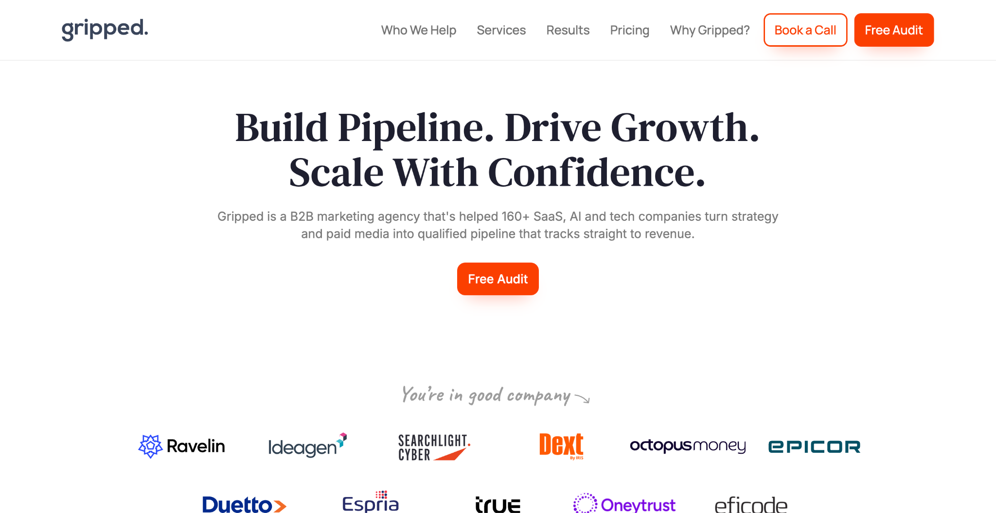 Gripped brings a revenue operations lens to account-based campaigns. They focus on touchpoints across the buyer journey — not just net-new outreach — and build multi-channel programs that align with sales activity.