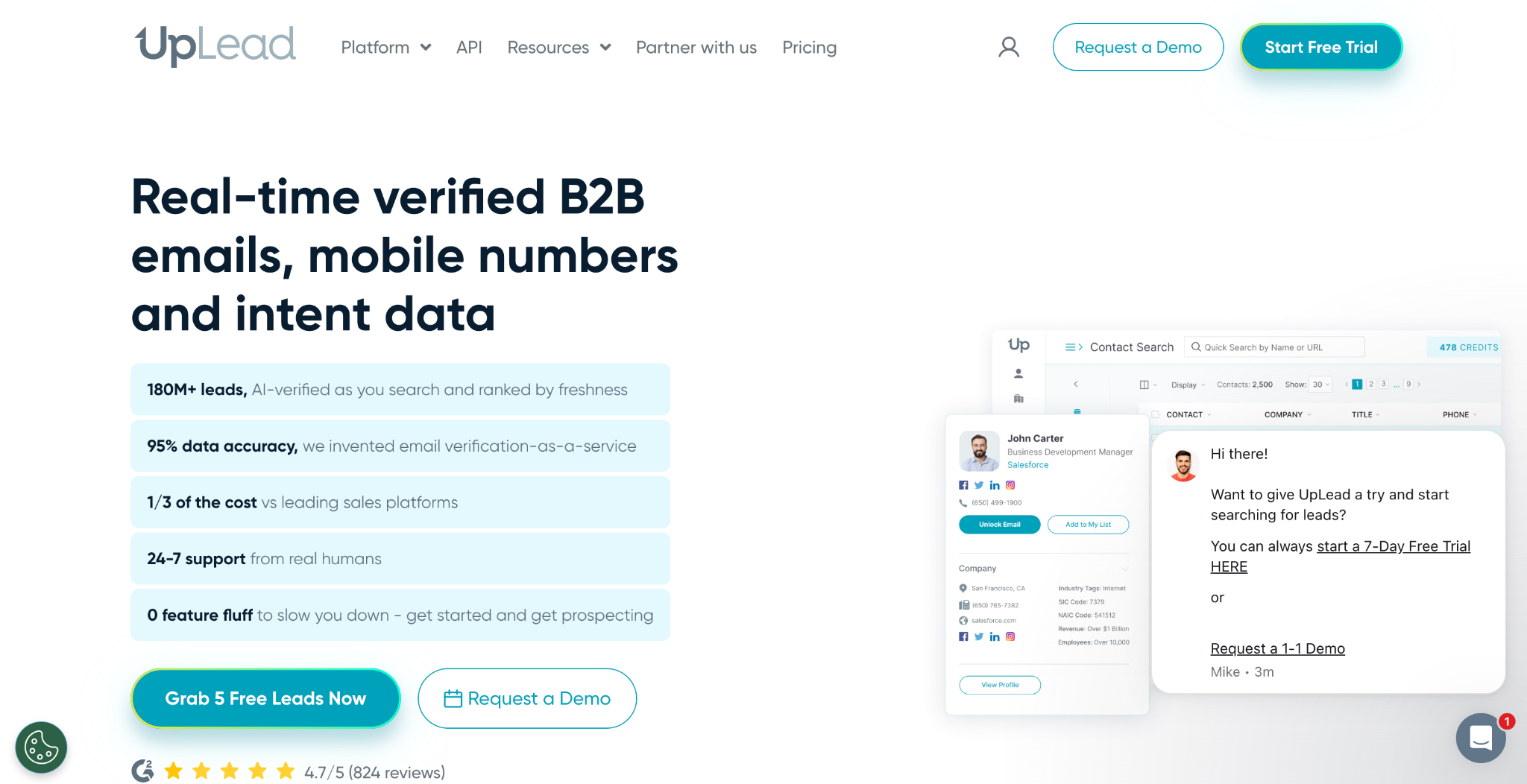 What it is: UpLead is A B2B data provider focused on accuracy and real-time email verification, without the complexity or cost of enterprise platforms.
