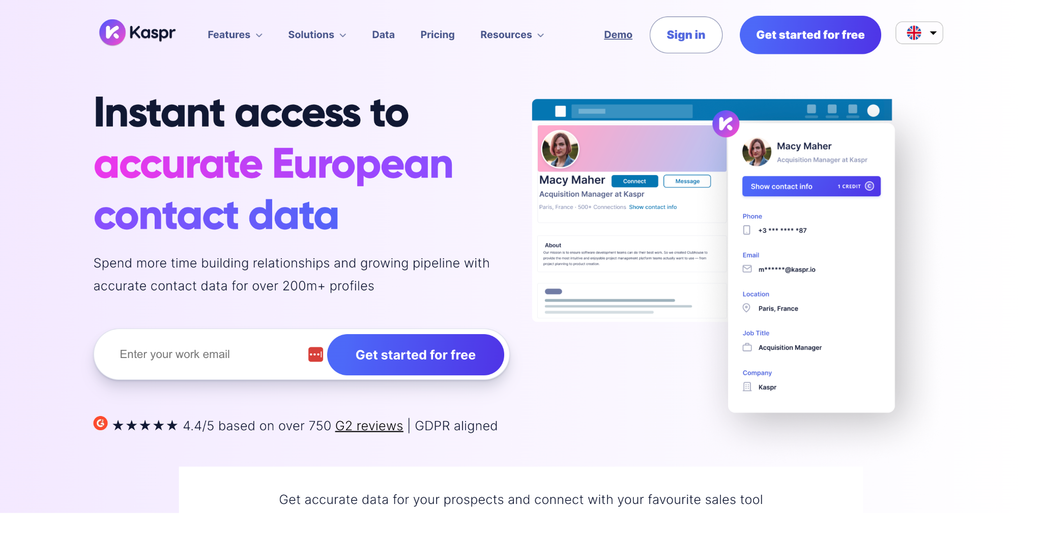 What it is: Kaspr is A LinkedIn-focused data tool that specializes in European contact data, especially phone numbers.