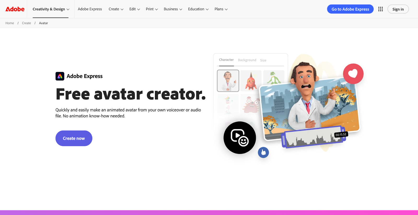 Adobe’s avatar maker lets teams design personalized digital avatars quickly — no drawing skills needed. Especially useful for remote teams, it gives every team member a consistent visual identity across videos, internal docs, and social profiles without relying on stock photos.