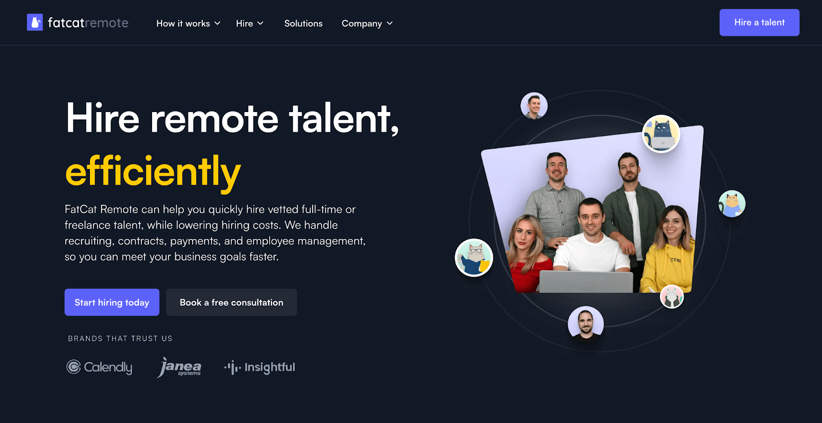 FatCat Remote is a full-service remote hiring platform connecting companies with vetted developers and IT professionals.