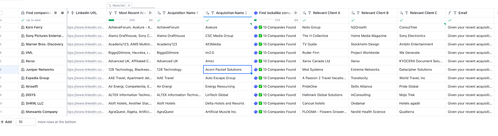 In the next section you’ll find 3 of the 10 campaigns that we run for them, as well as the Clay table and AI personalization we layered in to amplify the message.