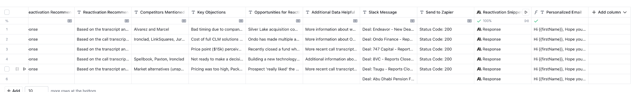 We identified lost deals in their CRM, reviewed Gong recordings and based on those insights created personalized emails to win those deals back either by reaching out at the right time, or by mentioning new features that were released or by offering limited time offers.